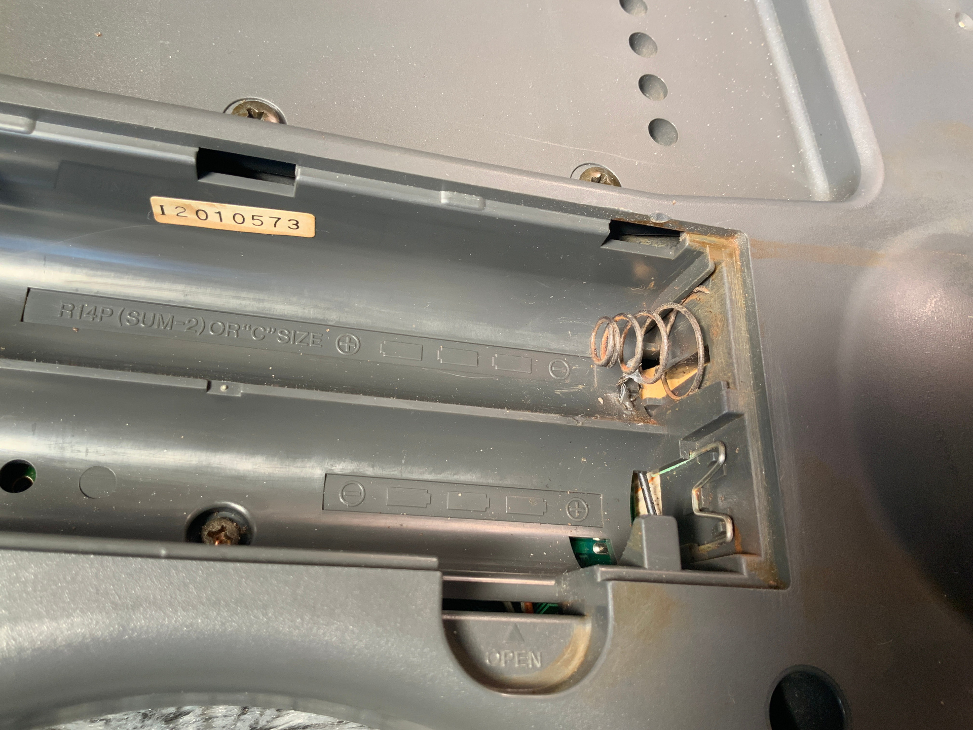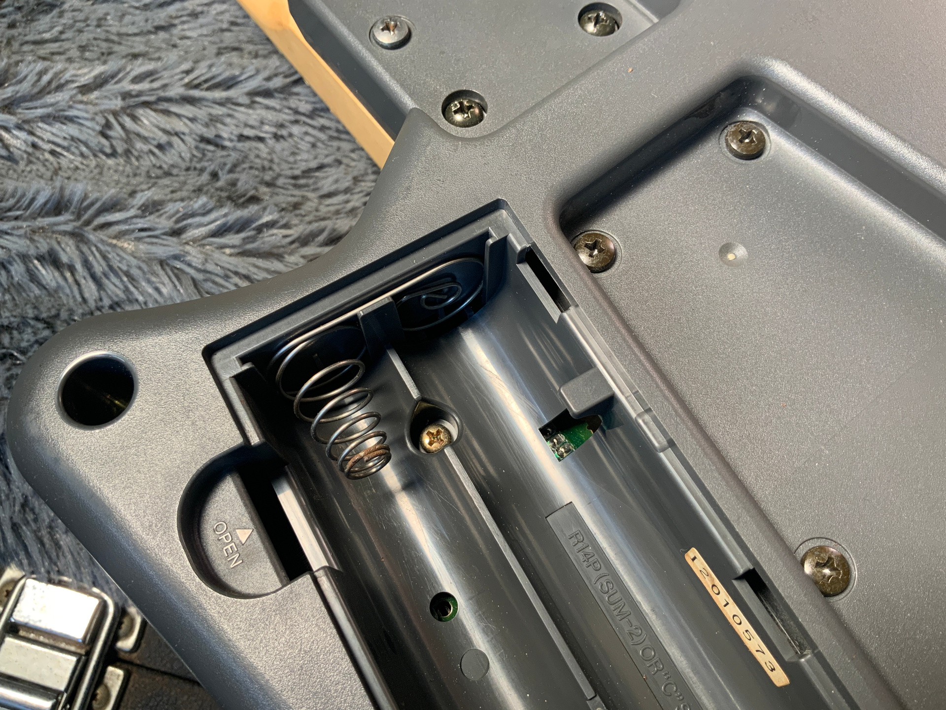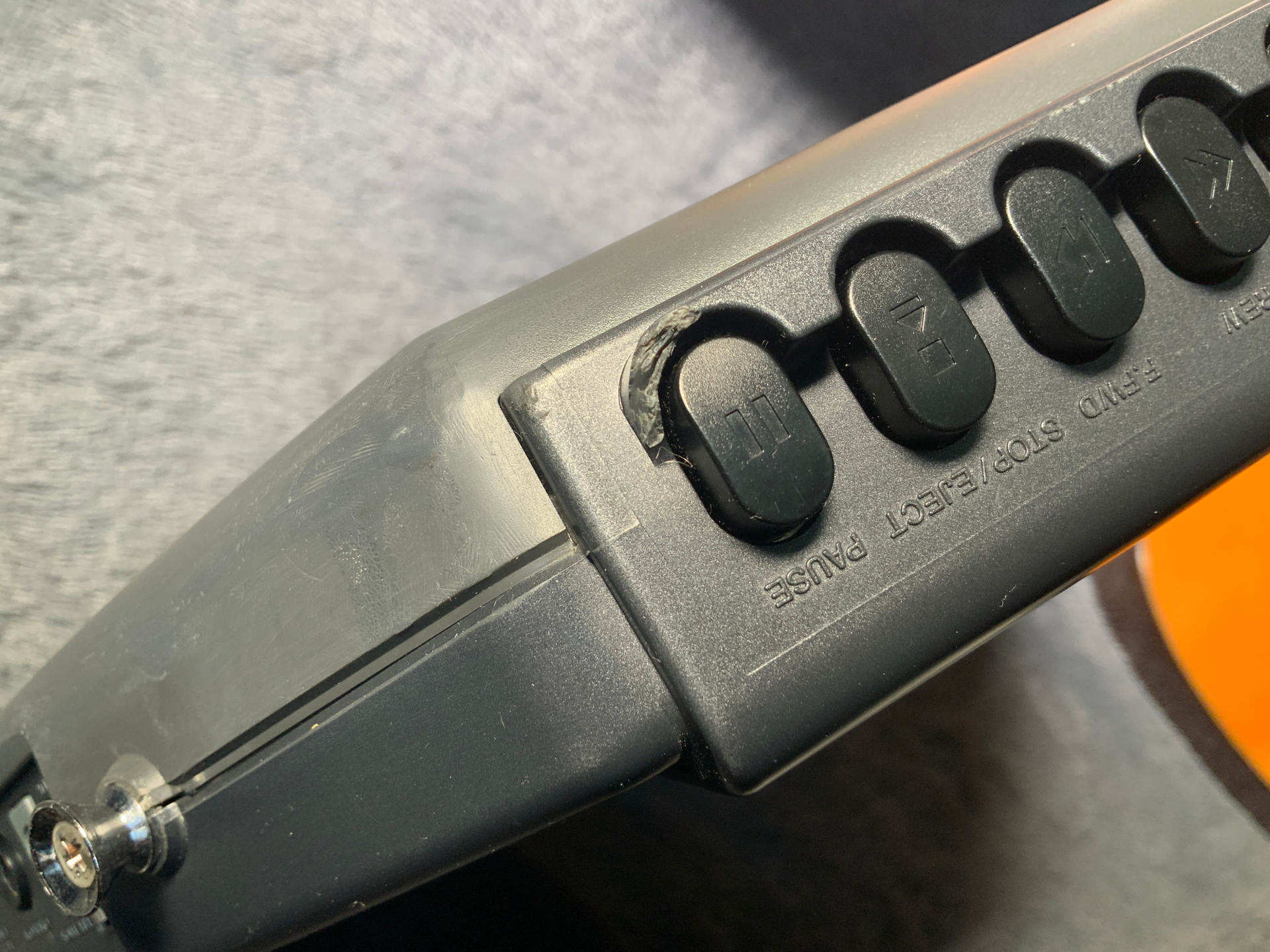 Редкий, интересный инструмент с большими возможностями. Гитара со встроенным динамиком, драйвом, кассетным магнитофоном с функцией записи и регулировкой скорости. Есть линейный стерео вход, стерео выход на наушники, встроенный дисторшн и регулировка уровня звука между источниками звука. Мензура 615 мм, верхний порожек 42 мм, вес 2.9 кг. Гриф кленовый, чистый и ровный, лады без ям с хорошим запасом. Гитара проверена с универсальным блоком питания 9 вольт — электроника, динамик и кассетник работают без нареканий. От батареек работа не проверена. Есть окисление в батарейном отсеке, небольшой скол и потертости по пластику, патина на фурнитуре