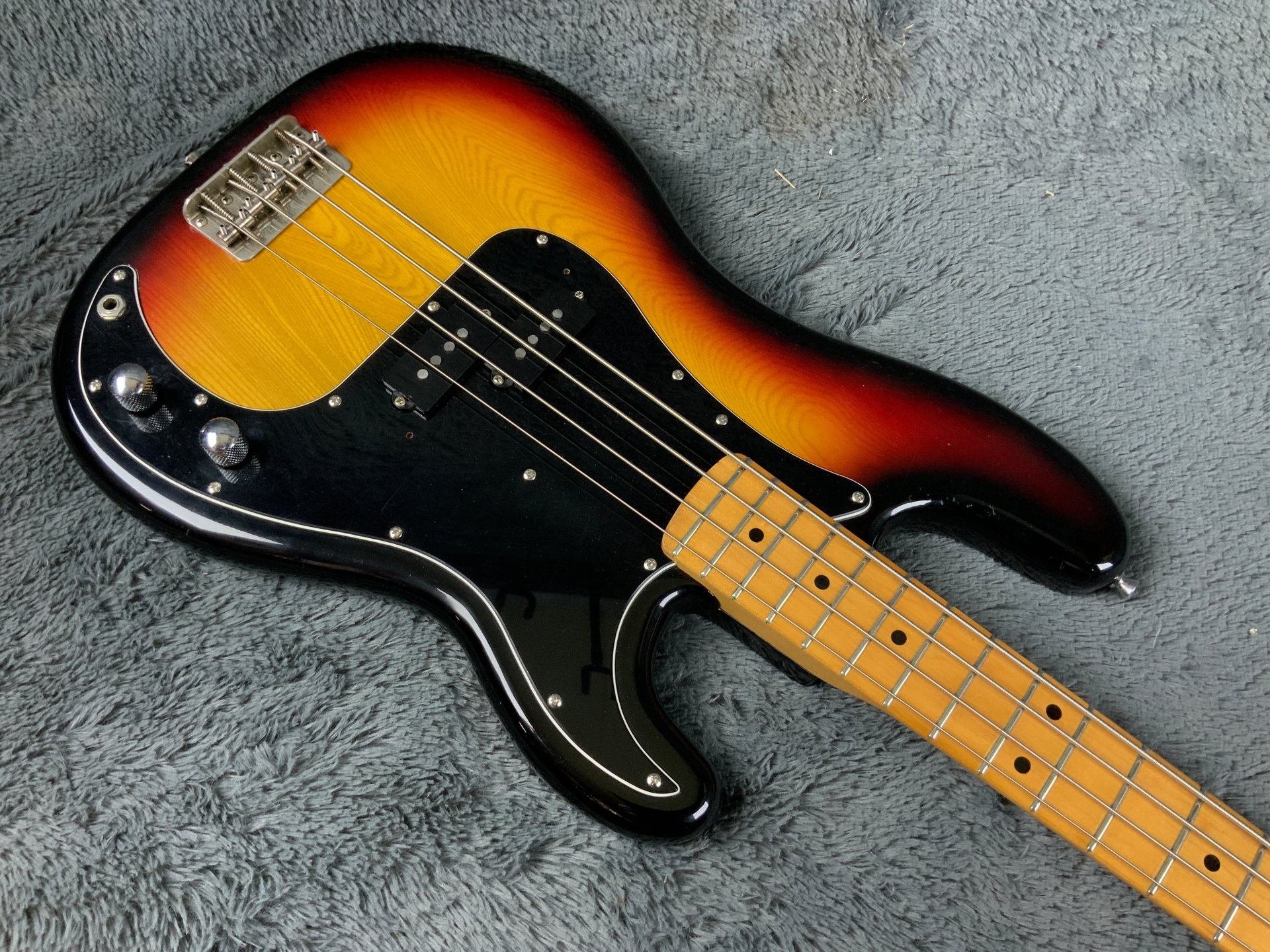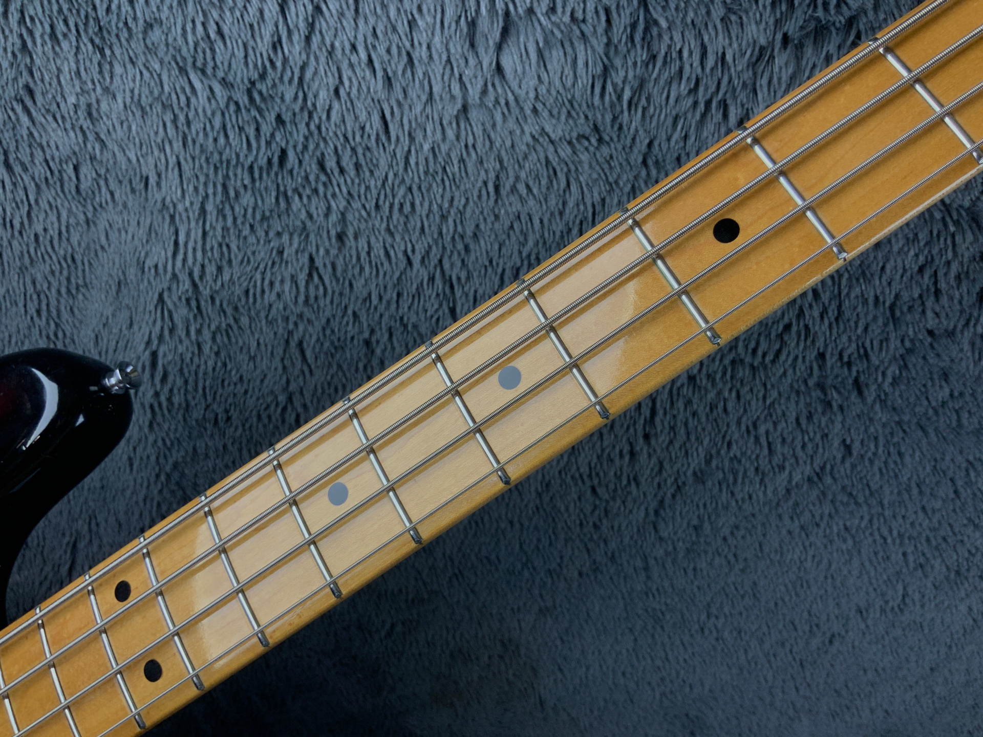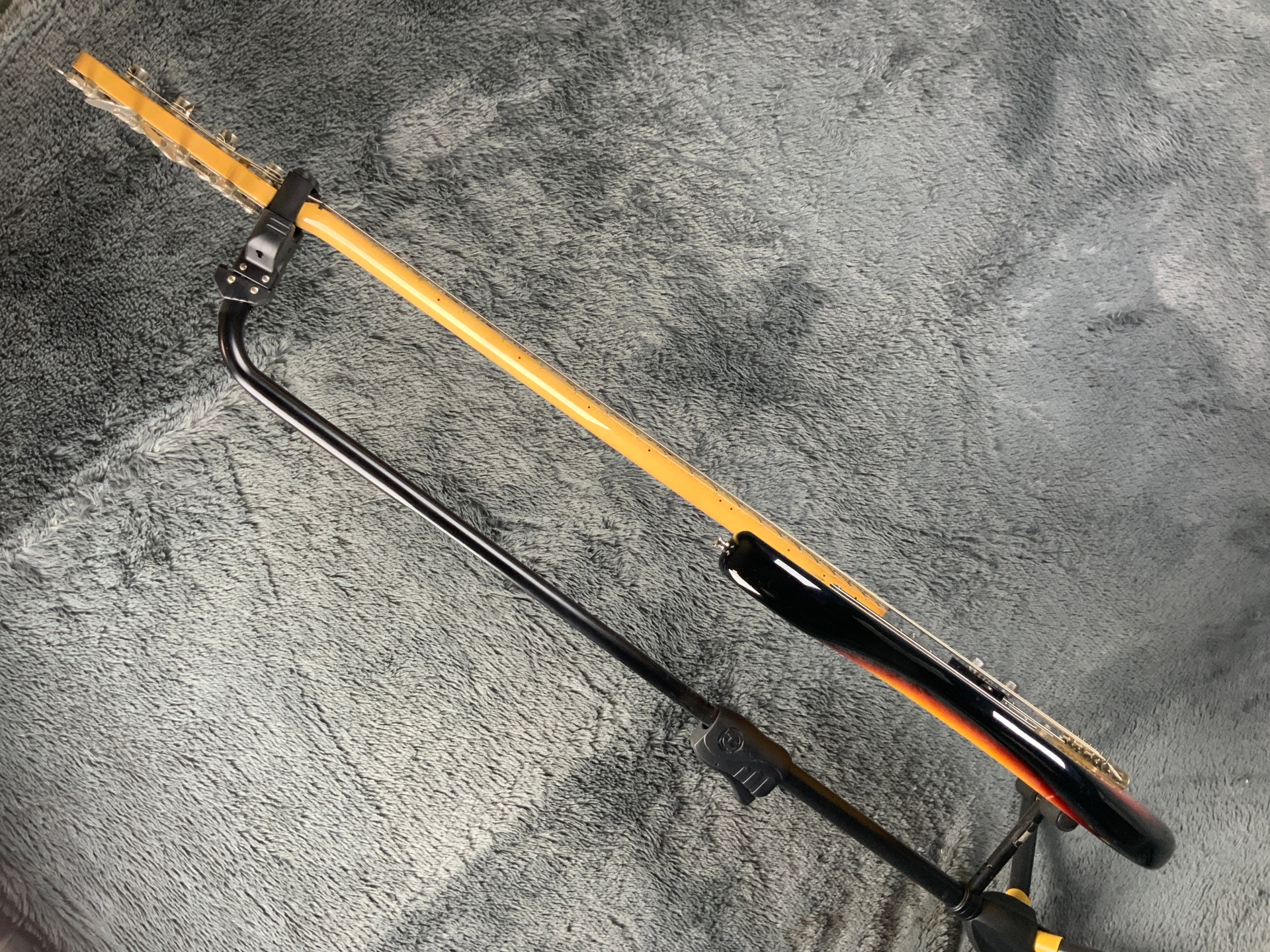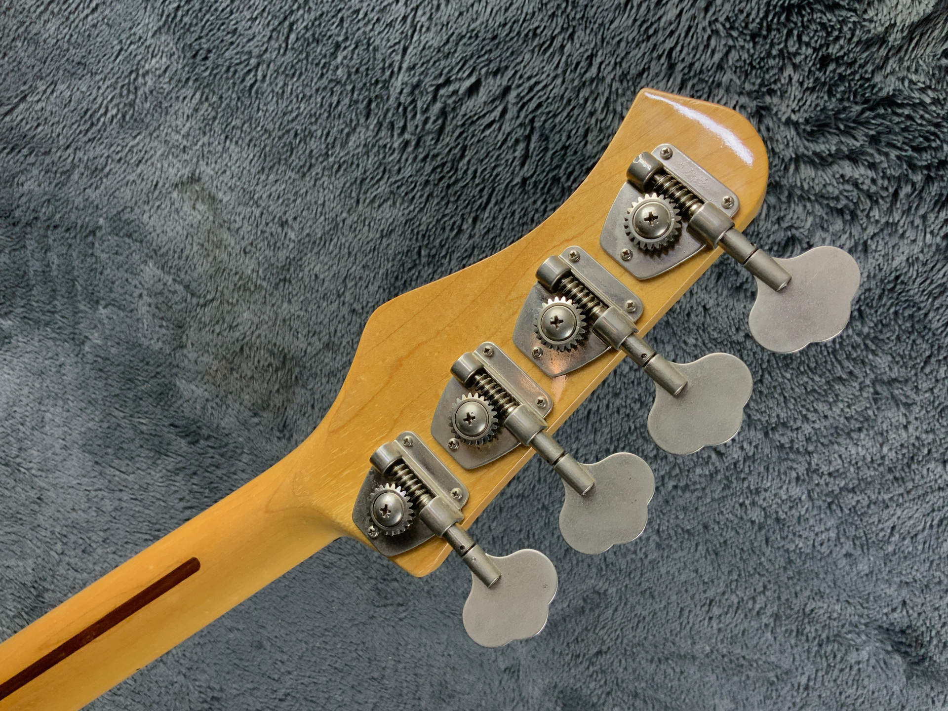 Редкая модель в стиле Fender Precision Bass, производство японской фабрики Tokai Gakki 80-х годов. Качество изготовления превосходное. Корпус из легкого ясеня, окрашен в красивый трехцветный санберст и покрыт тончайшим слоем лака. Гриф из одного куска клена с правильным распилом, в идеальном состоянии. Электроника оригинальная, полностью в рабочем состоянии. Мензура 870 мм, верхний порог 42 мм, вес 3.7 кг. Управление стандартное — громкости и тон. Гриф ровный, анкер рабочий, лады в порядке, струны низко, играть легко. Есть не критичные возрастные царапины, потертости, подретушированные сколы ушибы