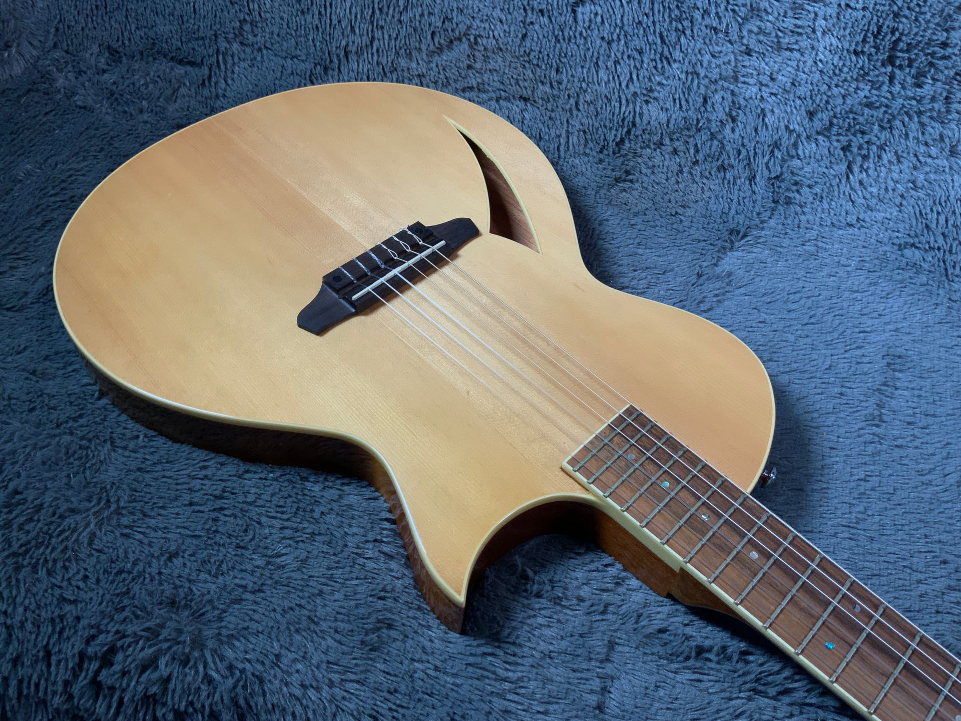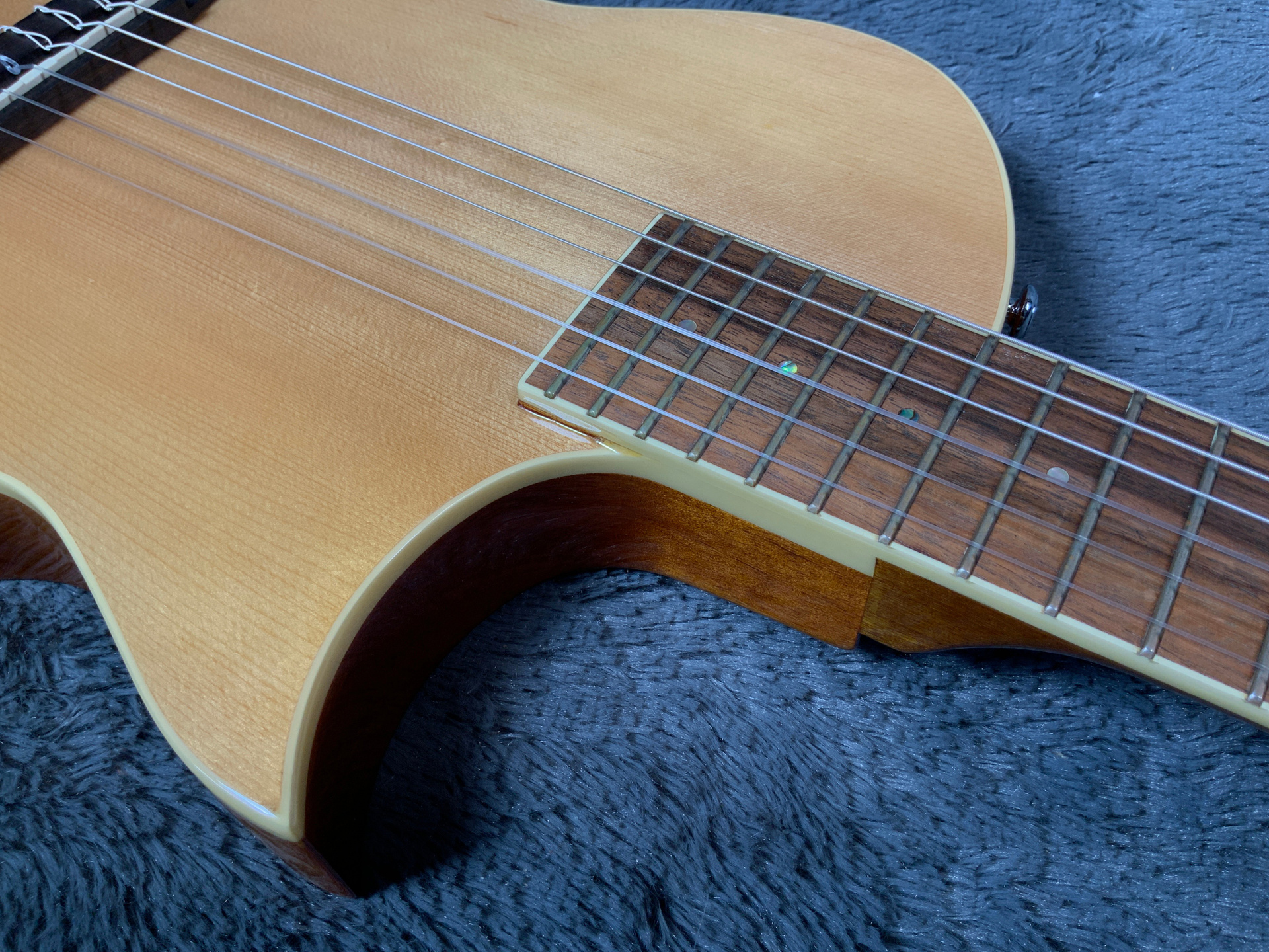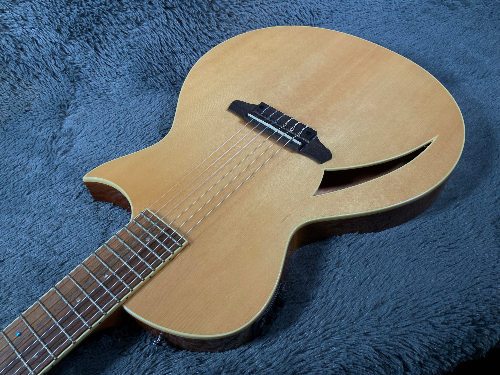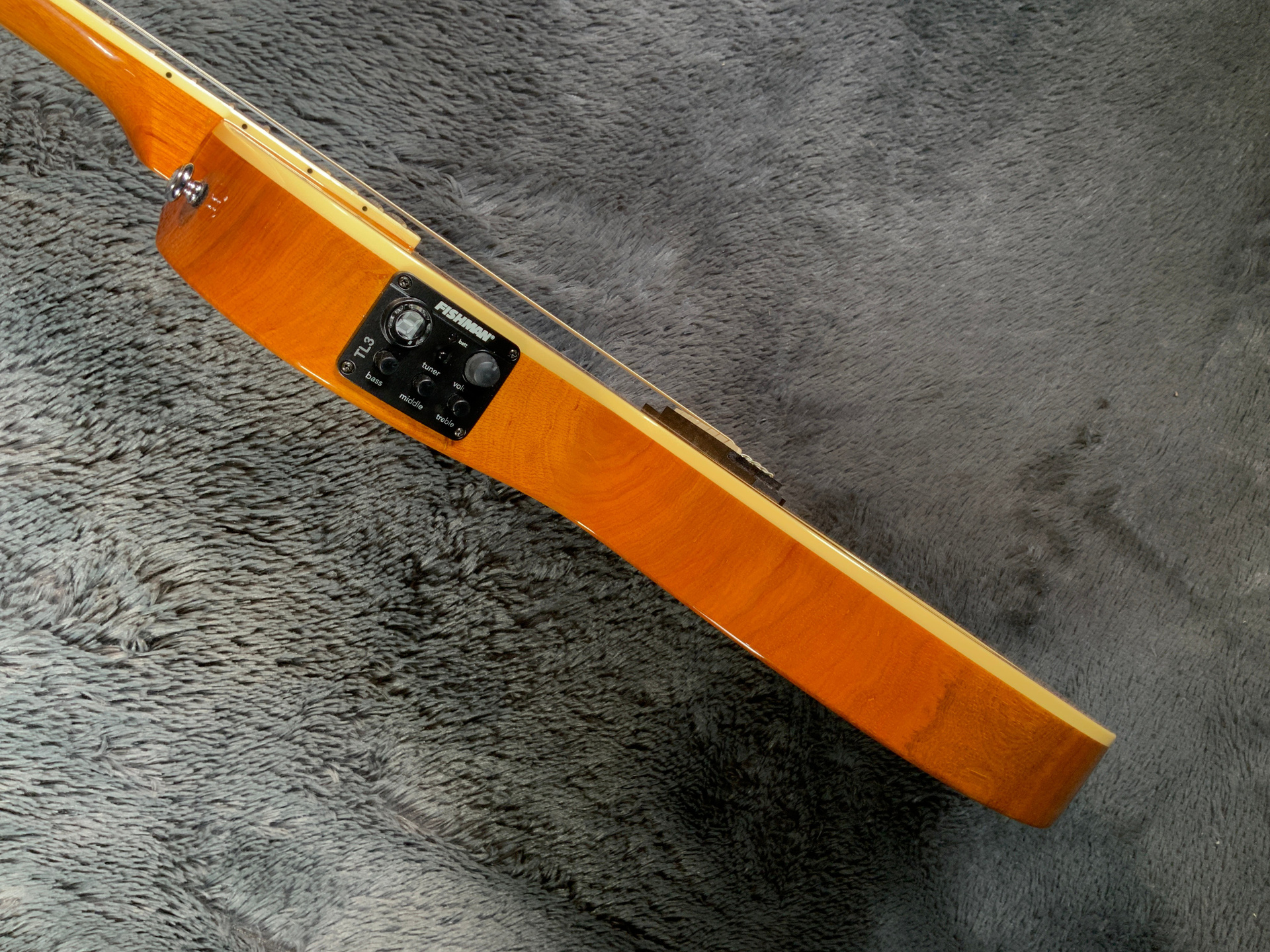 Шикарный инструмент в отличном состоянии, гриф ровный, анкер рабочий, лады в порядке. Звучит очень хорошо, даже в акустике. Струны низко, играть легко. Корпус красное дерево с топом из ели. Гриф из красного дерева, накладка из палисандра. Предусилитель Fishman TL-3 со встроенным тюнером. Мензура 635 мм, ширина верхнего порожка 48,5 мм, вес 3 кг.