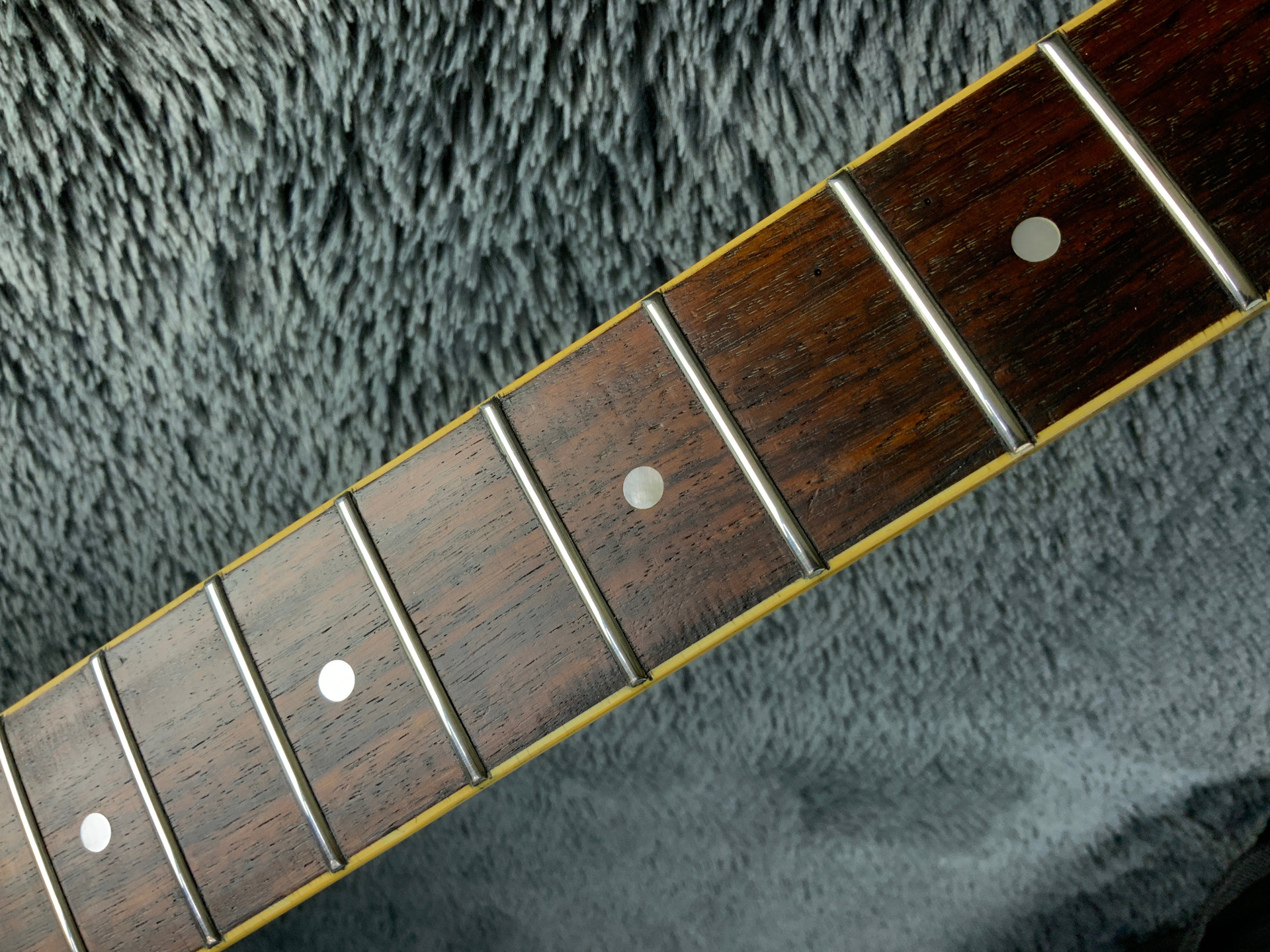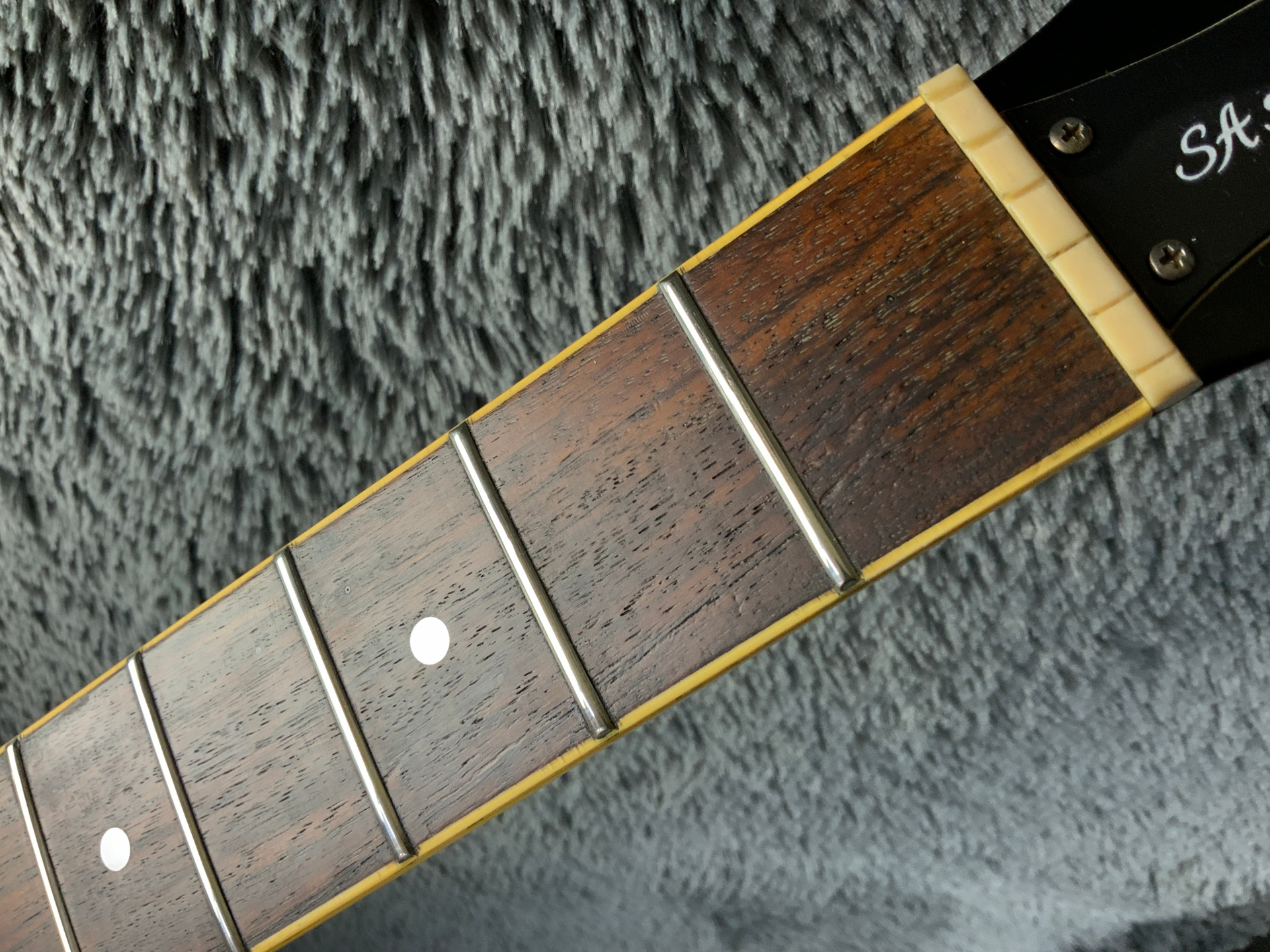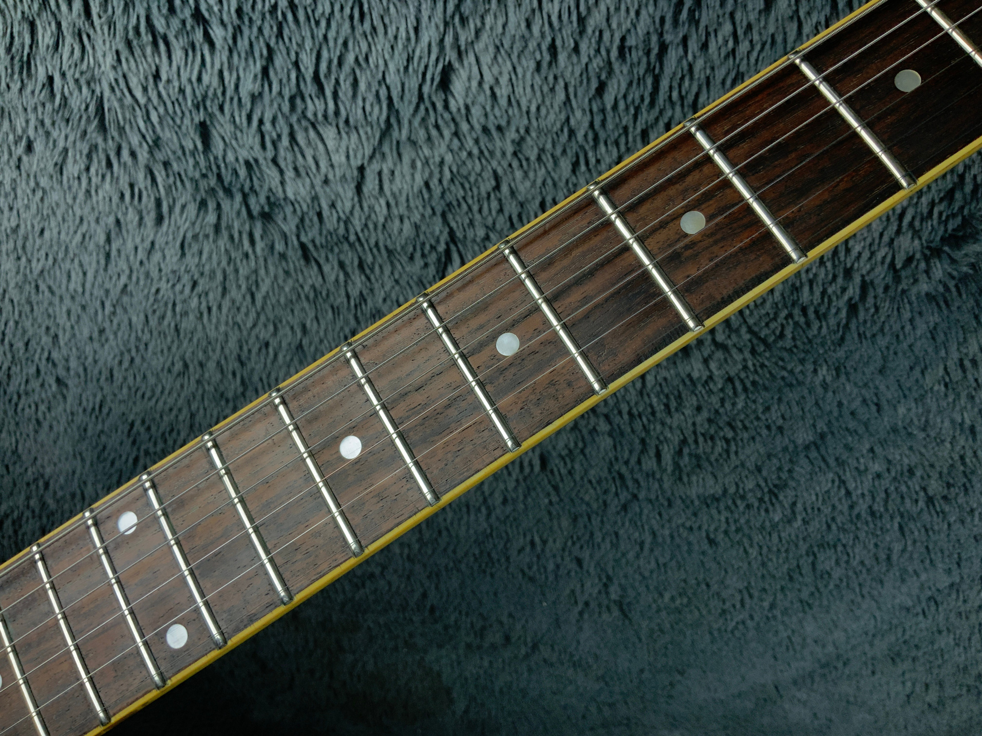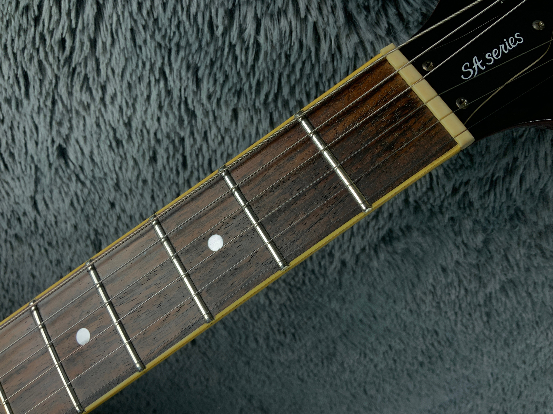 Электрогитара в красивом окрасе, хорошо построена — арочный корпус с центральным блоком Semi-Hollow Body. Мензура 630 мм, верхний порог 43 мм, вес 3,6 кг. Технически в норме, гриф ровный, накладка чистая, лады без износа, анкер рабочий, электроника в порядке. Внешне в целом все хорошо — есть некритичные трещины лака, сколы, царапины, потертости, патина на фурнитуре