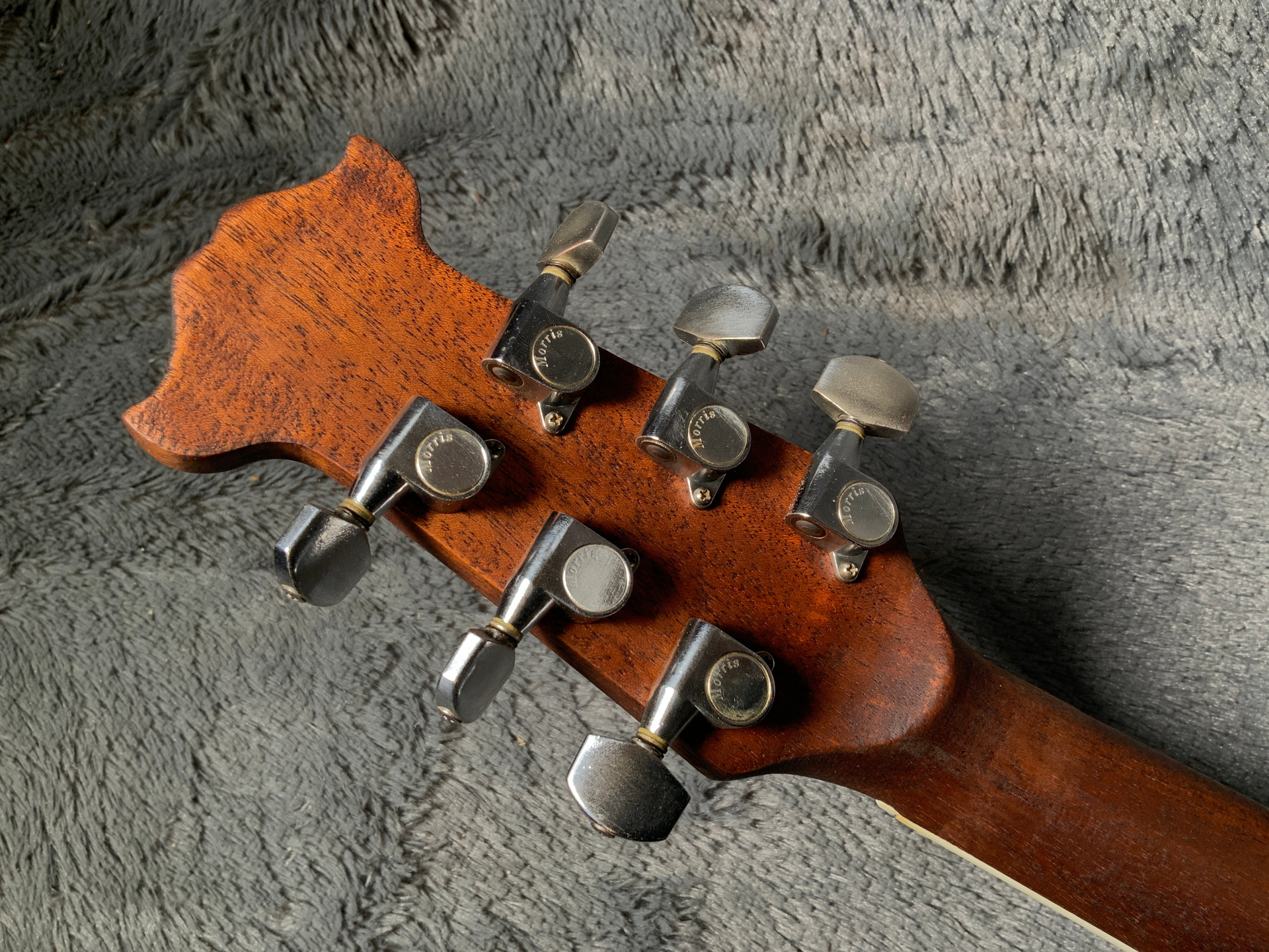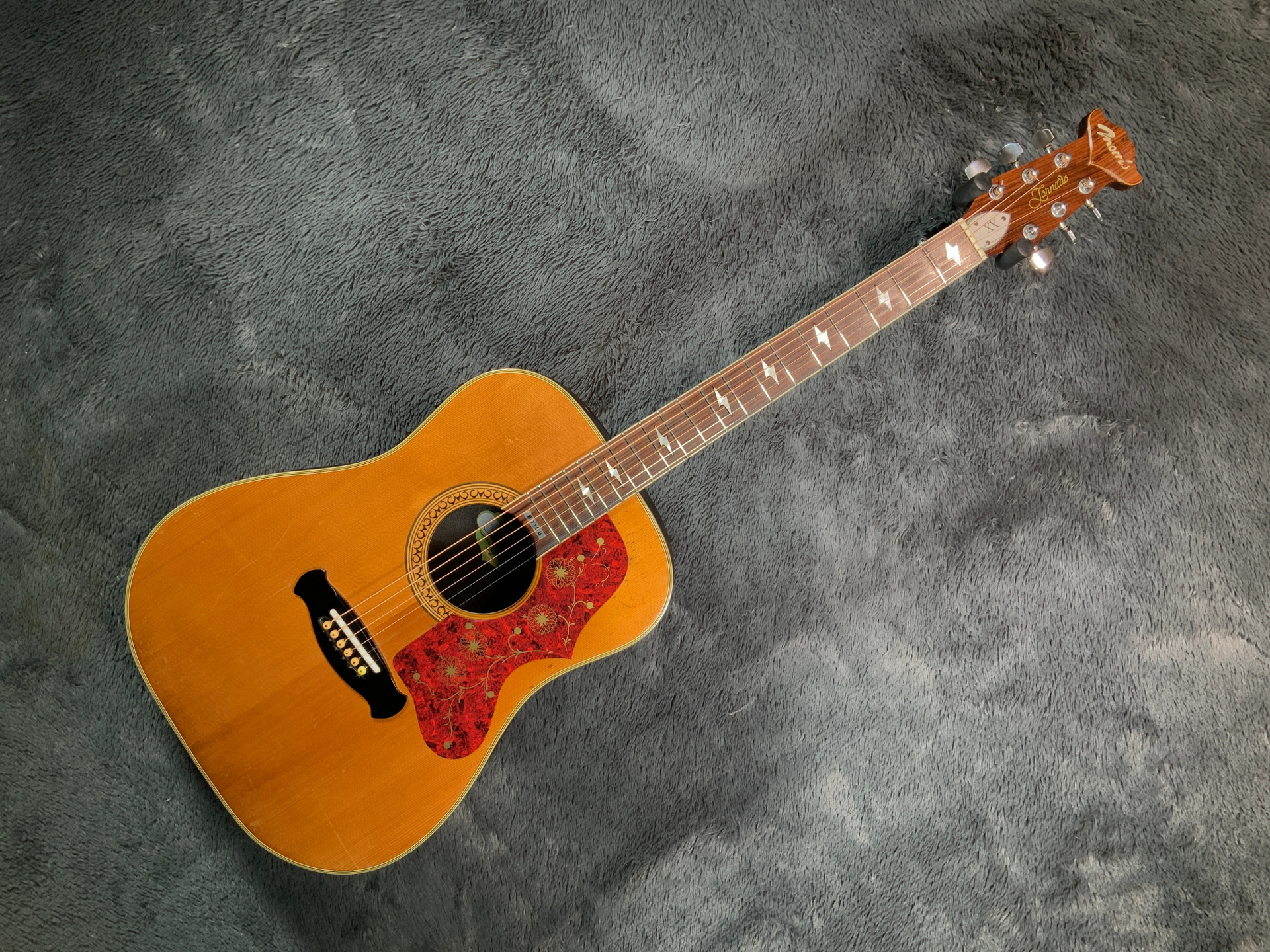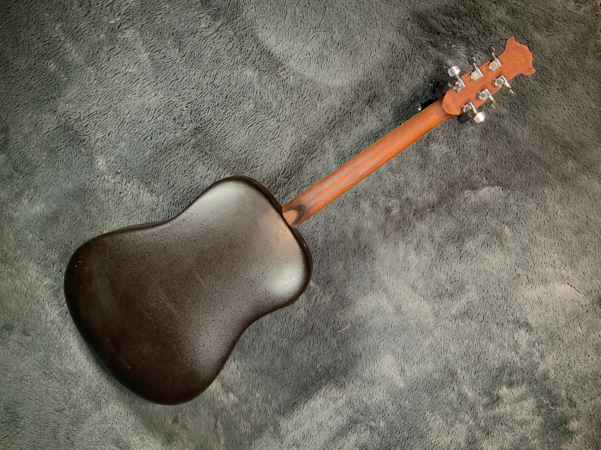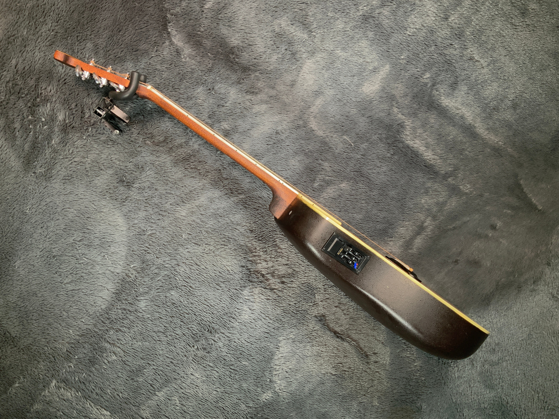 Электроакустическая гитара в стиле Ovation. Отлично звучит с подключением и в акустике. Установлены новые оригинальные американские струны D'Addario 11-52. Электроника переделана из пассивной в активную. Мензура 655 мм, верхний порожек 42 мм. Вес гитары 2,3 кг. Верх ель, корпус углепластик, гриф красное дерево покрытое масло-воском, накладка палисандр. Гриф ровный, лады без ямок с хорошим запасом, электроника в норме. Есть некритичные, возрастные царапины, потертости