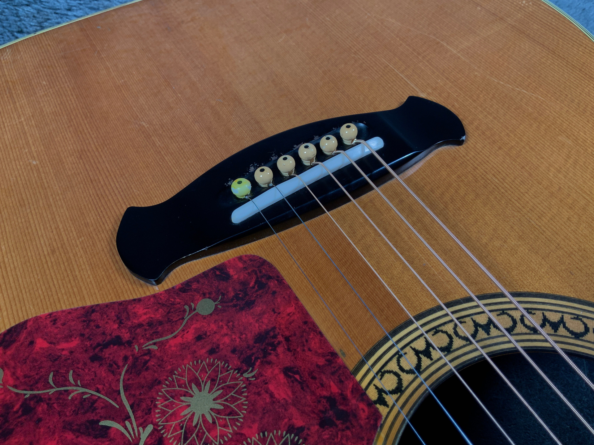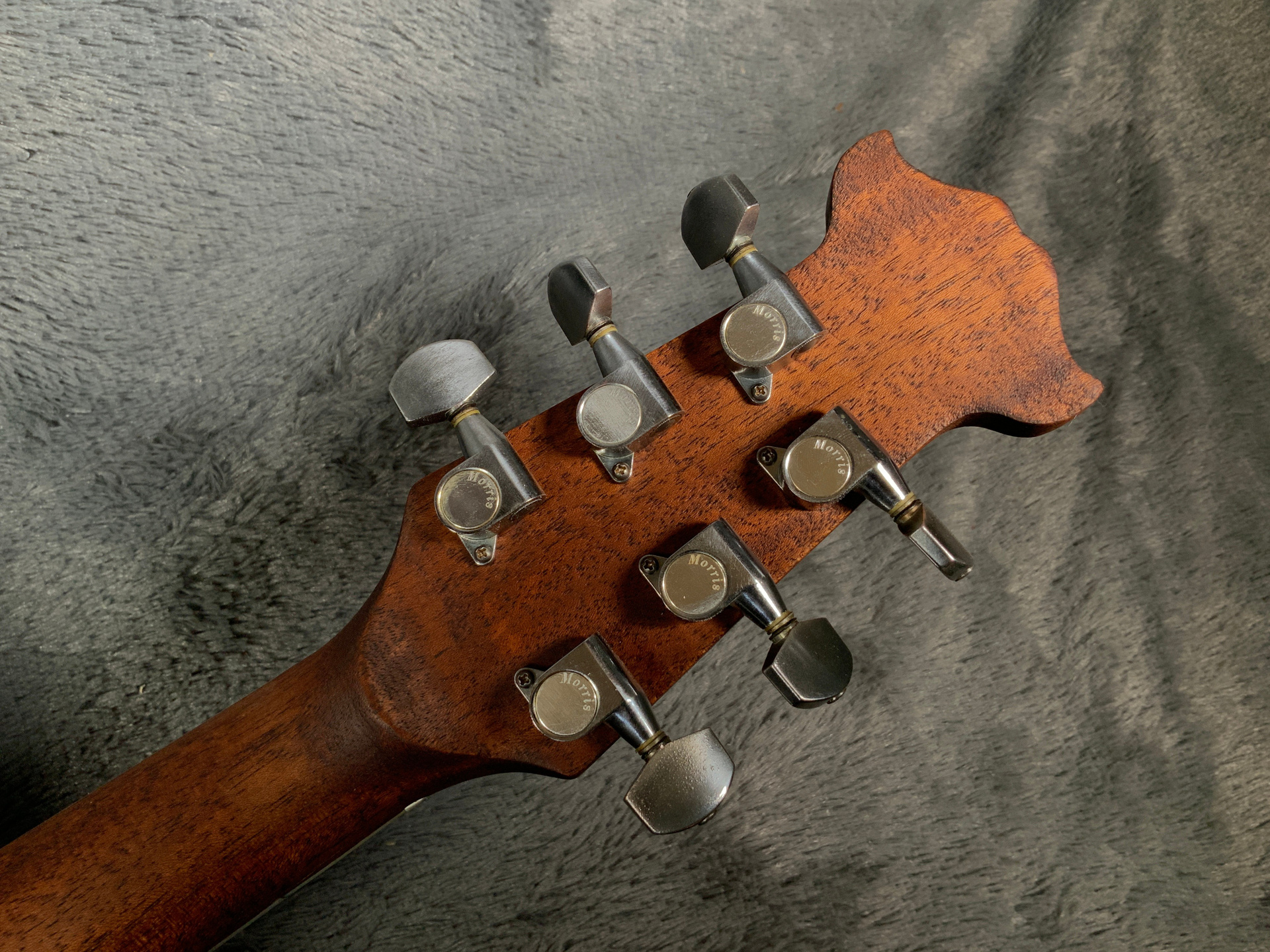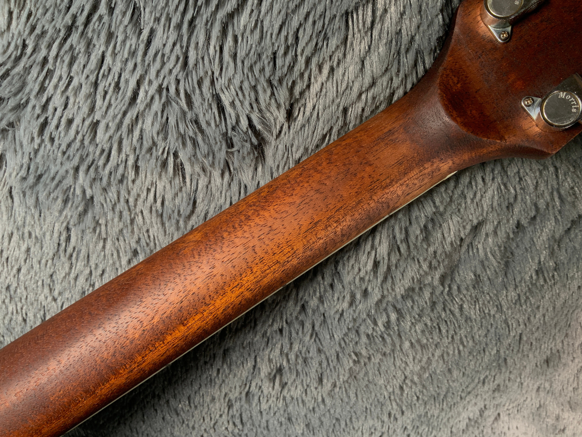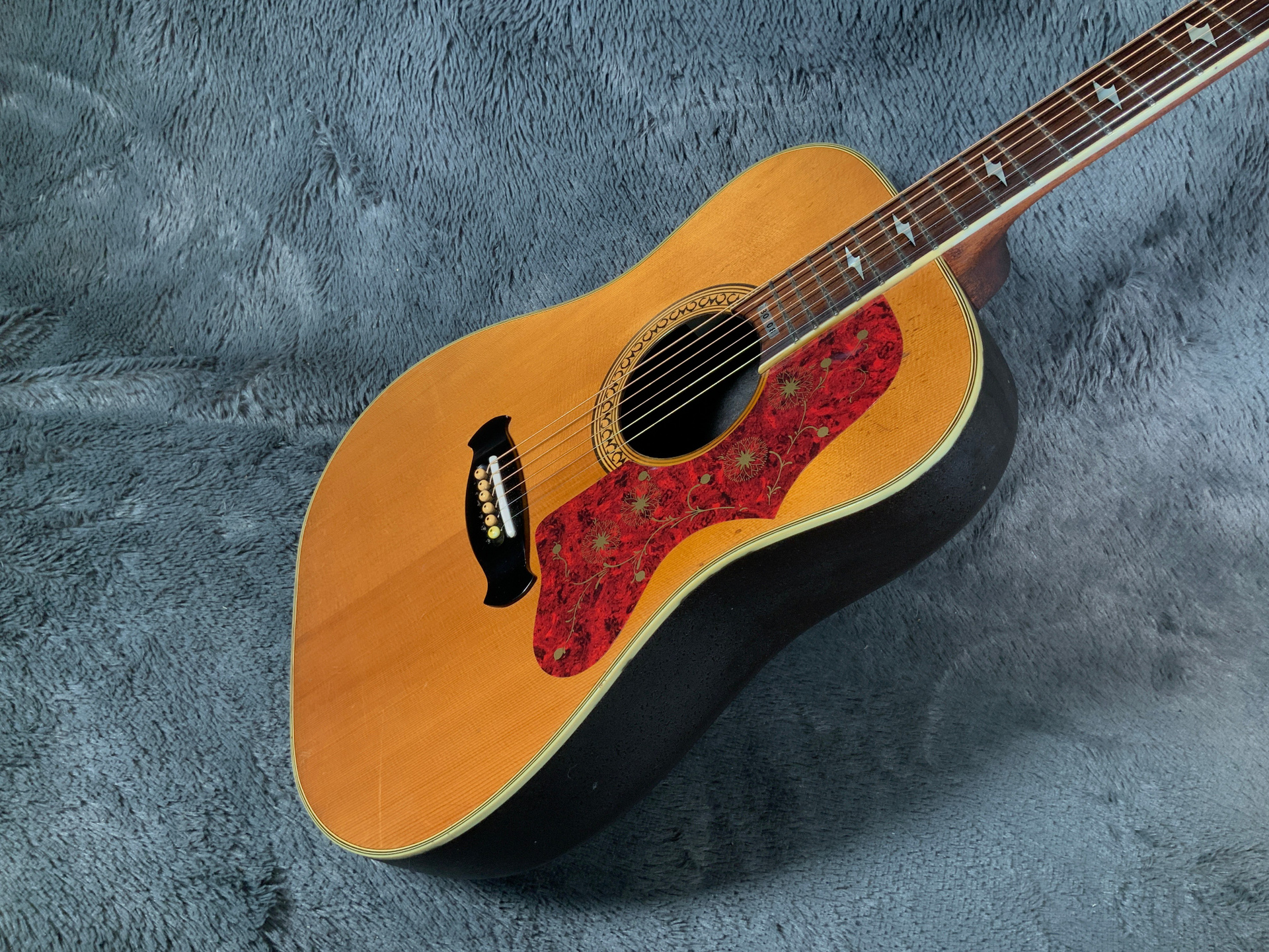 Электроакустическая гитара в стиле Ovation. Отлично звучит с подключением и в акустике. Установлены новые оригинальные американские струны D'Addario 11-52. Электроника переделана из пассивной в активную. Мензура 655 мм, верхний порожек 42 мм. Вес гитары 2,3 кг. Верх ель, корпус углепластик, гриф красное дерево покрытое масло-воском, накладка палисандр. Гриф ровный, лады без ямок с хорошим запасом, электроника в норме. Есть некритичные, возрастные царапины, потертости