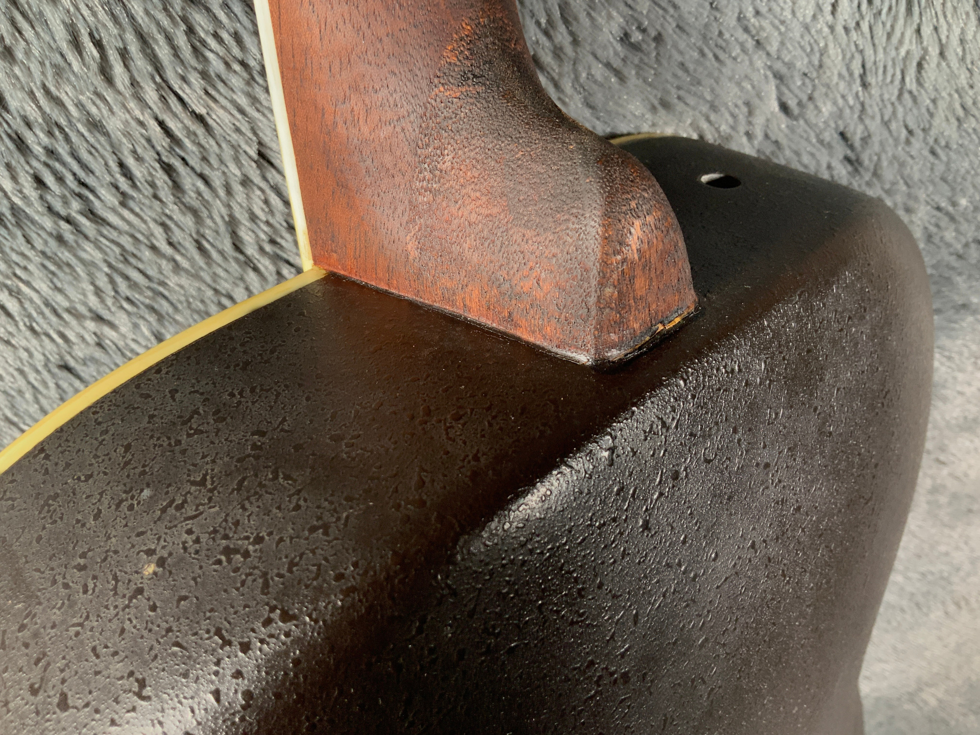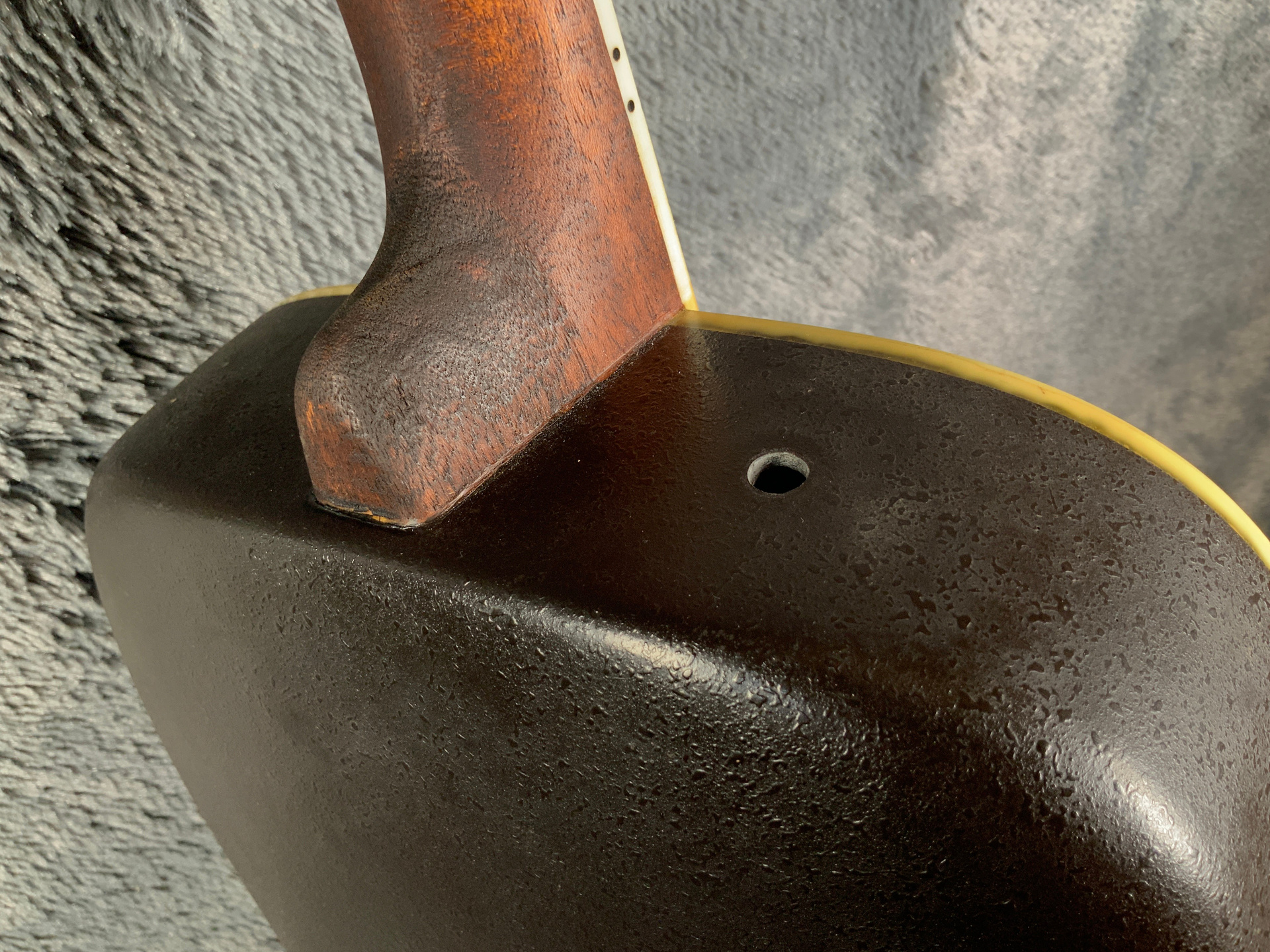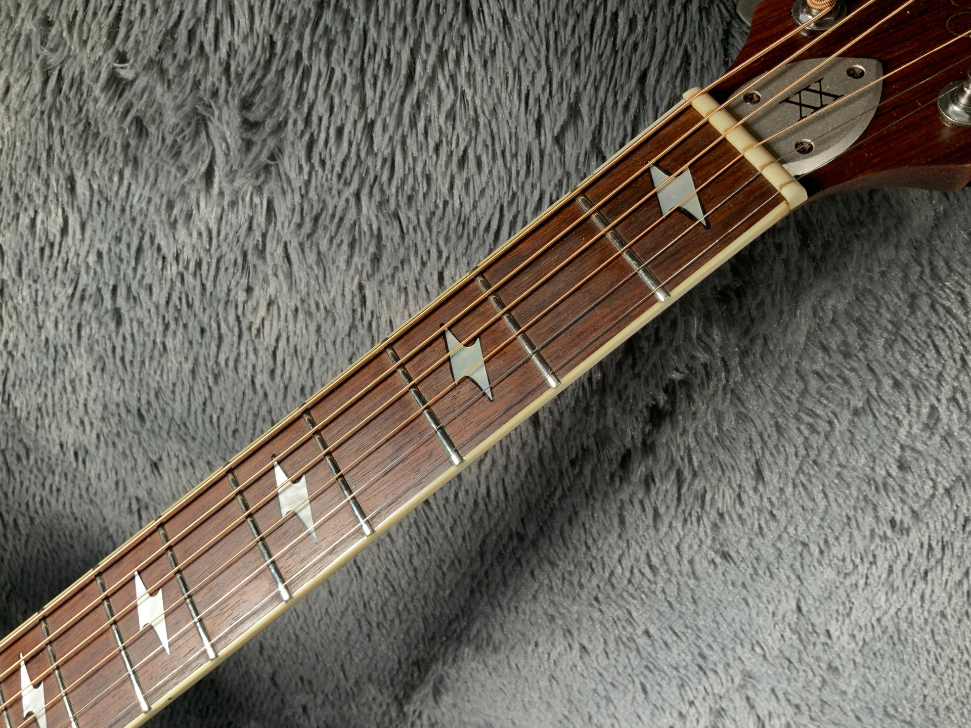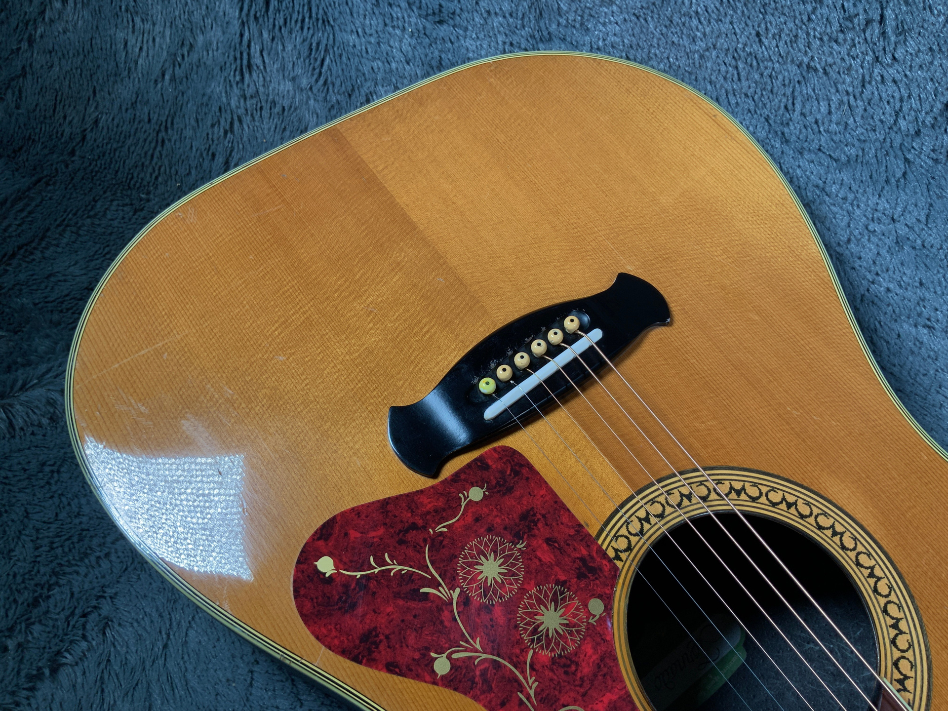 Электроакустическая гитара в стиле Ovation. Отлично звучит с подключением и в акустике. Установлены новые оригинальные американские струны D'Addario 11-52. Электроника переделана из пассивной в активную. Мензура 655 мм, верхний порожек 42 мм. Вес гитары 2,3 кг. Верх ель, корпус углепластик, гриф красное дерево покрытое масло-воском, накладка палисандр. Гриф ровный, лады без ямок с хорошим запасом, электроника в норме. Есть некритичные, возрастные царапины, потертости