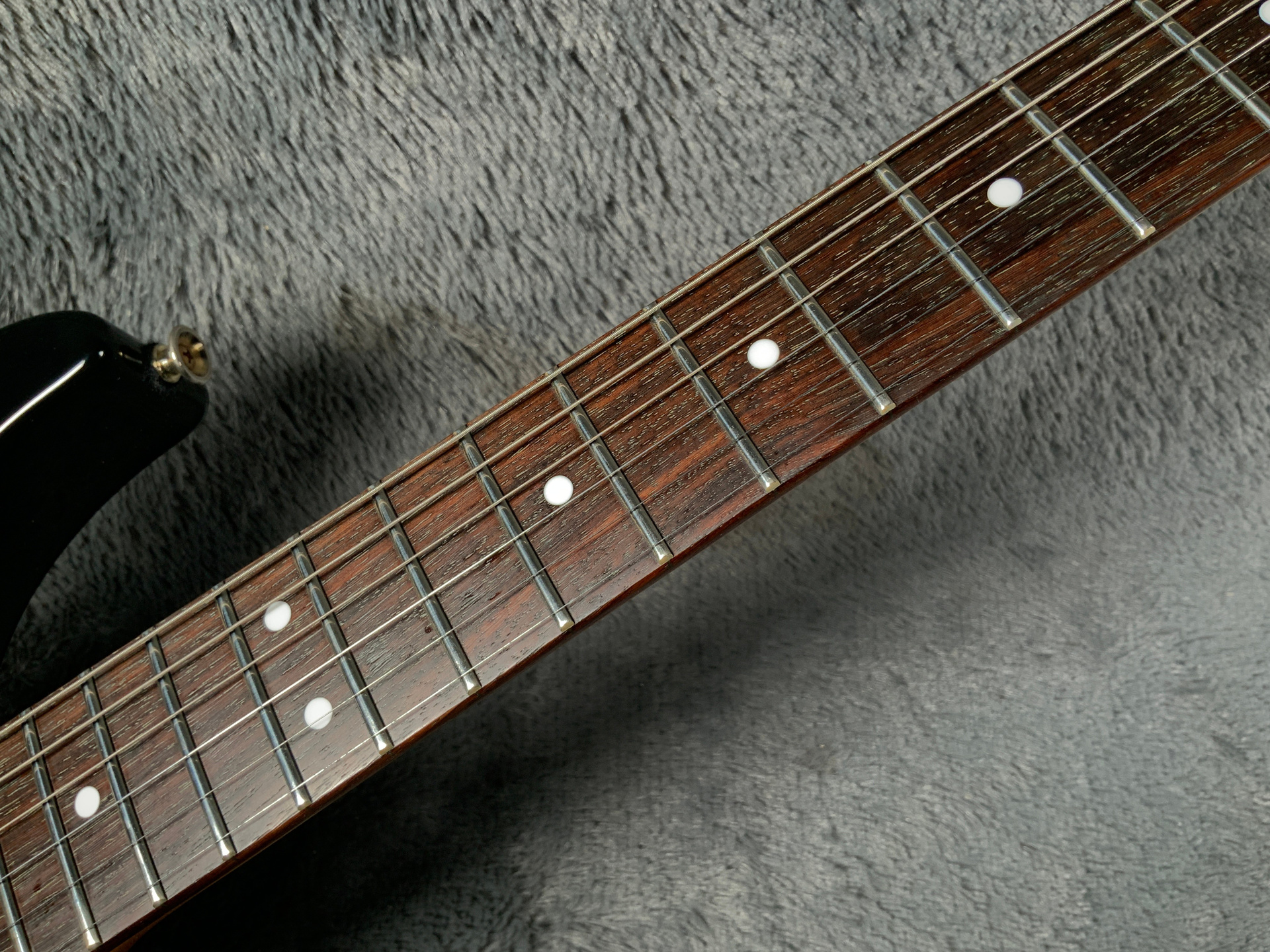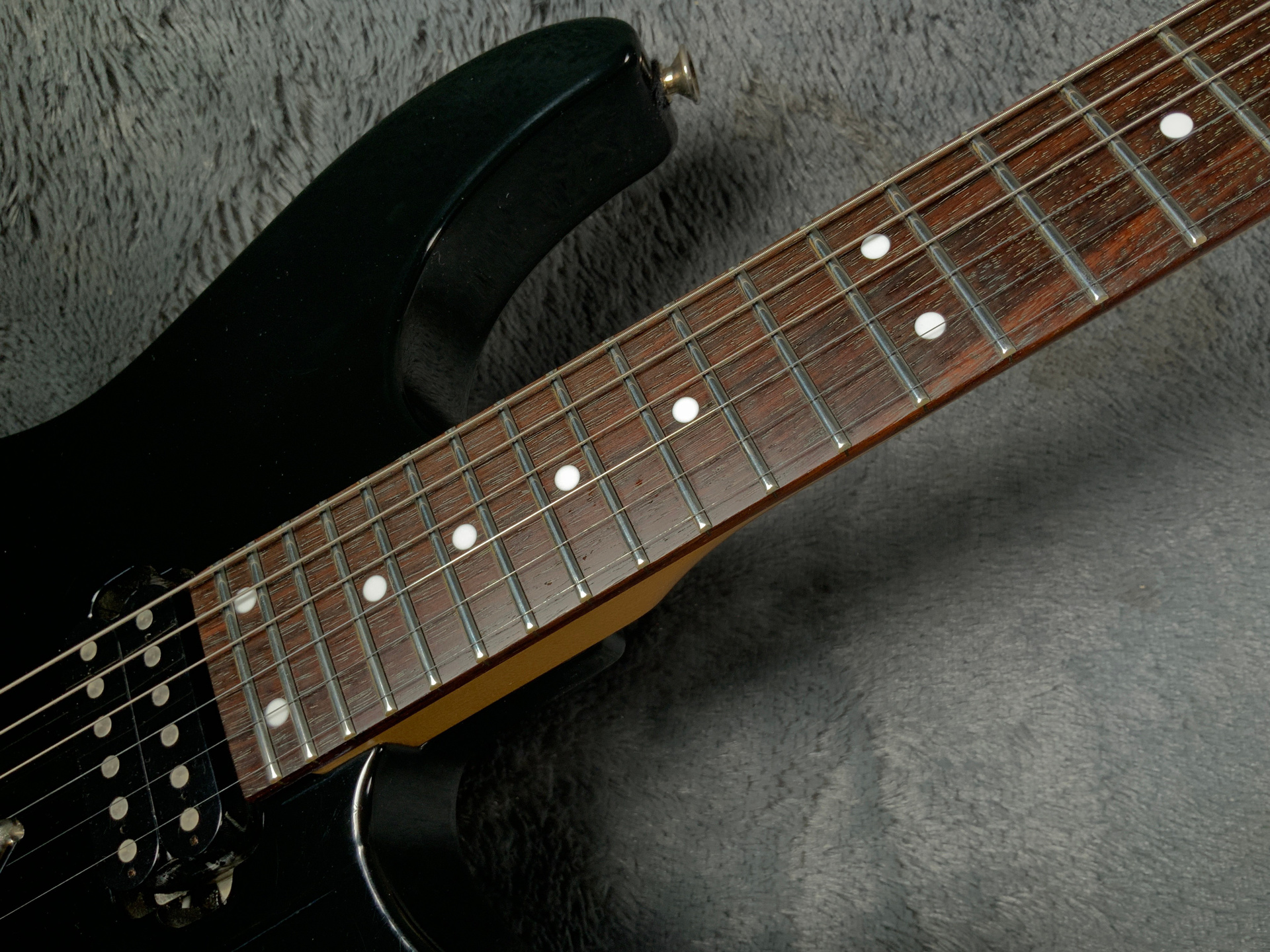 Японский суперстрат 90-х годов. Корпус липа или тополь, гриф клен 24 лада, накладка из красивого темного палисандра. Мензура 635 мм, верхний порожек 41,5 мм, вес 3,6 кг. Состояние хорошее, гриф прямой, анкер рабочий, лады высокие без ям, накладка чистая. Электроника в норме. Звучит хорошо, струны низко, играть легко