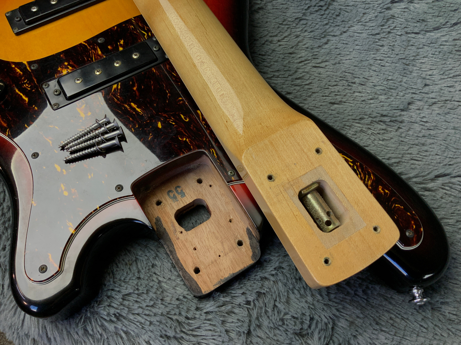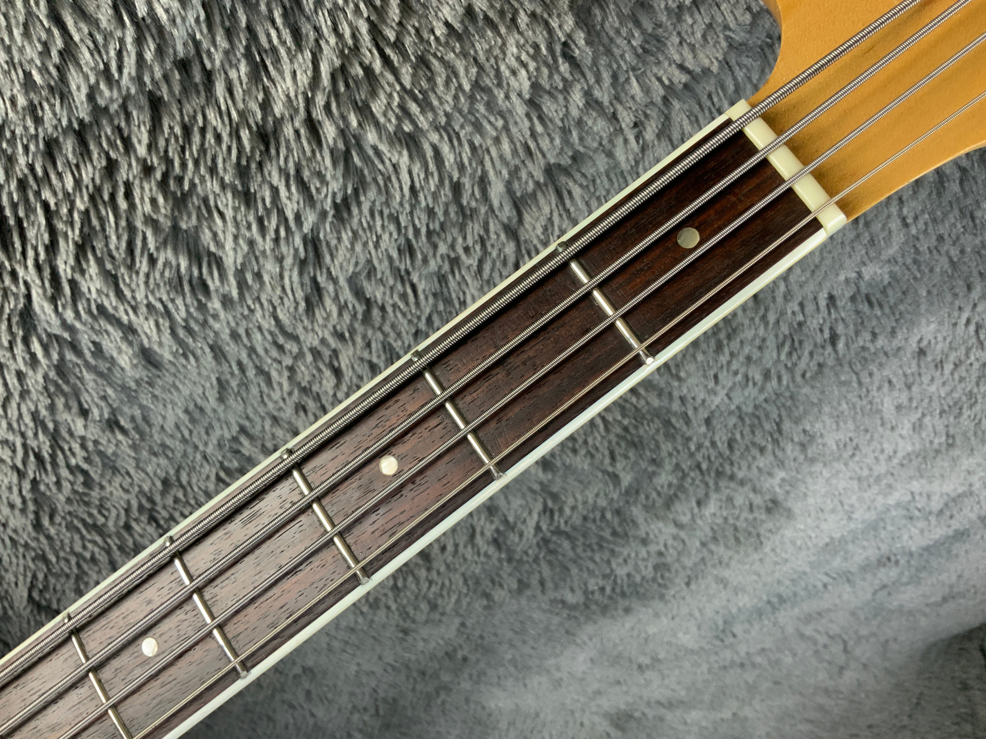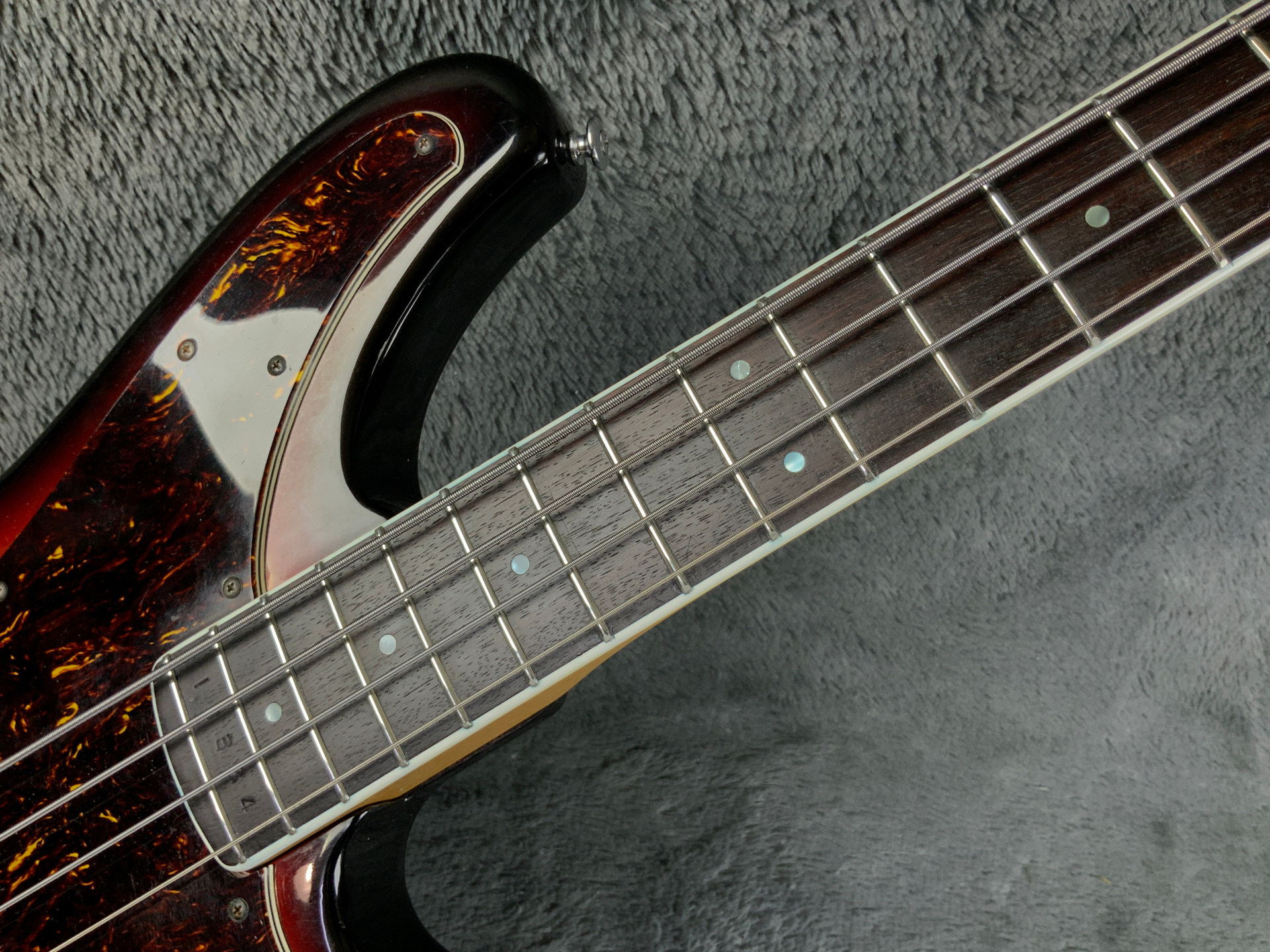 Превосходный винтажный бас, довольно редкая модель в красивом цвете из серии Super Bass 70х годов. Бас удобен в игре, с хорошей эргономикой и балансом. Звучит великолепно, в миксе сидит как надо, очень отзывчив на динамику. Корпус из массива красного дерева с топом из кленового шпона. Гриф кленовый 20 ладов с накладкой из красивого темного палисандра. Мензура 870 мм, верхний порожек 38 мм, вес 4,3 кг. Звукосниматели оригинальные Yamaha SB-55 Single Coil, управление 2 громкости, 1 тон. Красивый 4х слойный пикгард. Для своих 50 лет состояние инструмента достойное. Гриф ровный, лады без ям, электроника оригинальная в порядке. Есть не критичные царапины, потертости, патина на фурнитуре